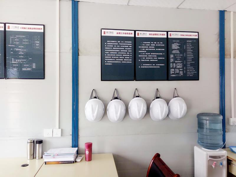 辦公室布置嚴格按照公司LDBZ-2017-12標準,布置到位,樹立了公司良好形象,并督促項目部員工嚴格執行公司管理制度。